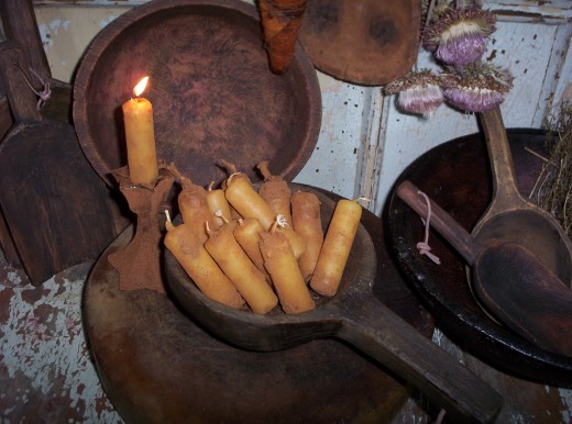 BEESWAX. Each candle is rolled in my own spice blend to give it a really early settlers'