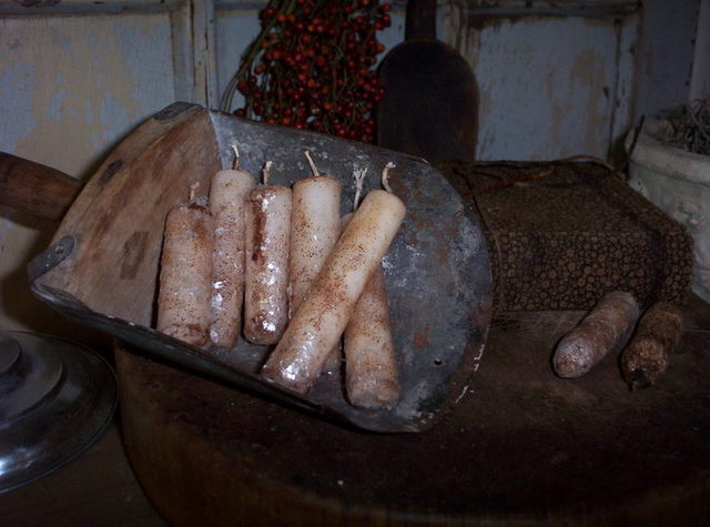 These Fragrant Peppermint candles are handmade by me. Each candle is rolled in my own spice blend to give it a really aged Early Colonial look...very very dirty!!! I also roll the candles in a mica mix to give them that snow glistening look. These primitive candles are so festive yet old looking!! They look like they were crudely made in the early Colonial days! These candles have a muted, dull, creamy white color and a very stong scent of PEPPERMINT and CINNAMON. They will come to you as shown. You get SIX candles each measuring between 3"-4". These candles are not just for Christmas. Pile them up in an early wooden dough bowl, in a crock, pewter charger, trencher or treen bowl. A welcome decoration to any traditional colonial home. You will LOVE these early looking candles!!!