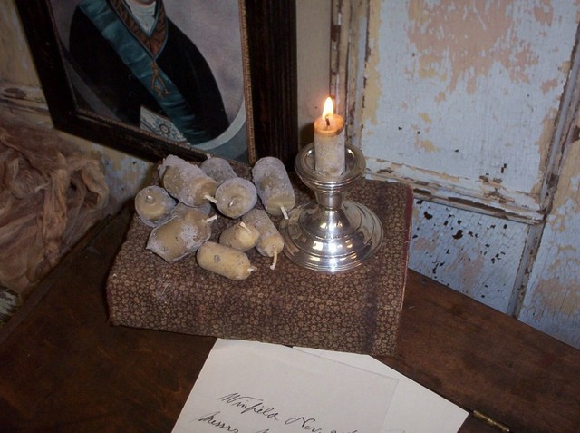 Simply Primitive Early Lighting Faux TALLOW SPICED CLOVE candle nubbies. I created these faux TALLOW nubs using my own special blend of ~SPICES and CLOVE~ oils and real ash. These ~Faux Tallow~ ~Spiced Clove~ nubs are made by me using 100% PURE BEESWAX. Each candle is rolled in mixed spices and ash to give it a really early settlers' look. Nothing but EXTREME primitive with this candle representing the tallow candles of a day long gone. Bits of real coal, ash and deep pitting make this candle look like it was made in another century.These little primitive beauties are so UNIQUE & old looking!! They look like they were crudely made in the early settler's days! These candles will come to you as shown. You get TWELVE candles, each measuring between 1"-2". They look great in a lantern, chamber stick holder or hog scraper. A welcome decoration to any traditional colonial home. Perfect to pile up on an old board, in an old wooden dough bowl, trencher or on a treen plate! You will LOVE these early looking candles!!!