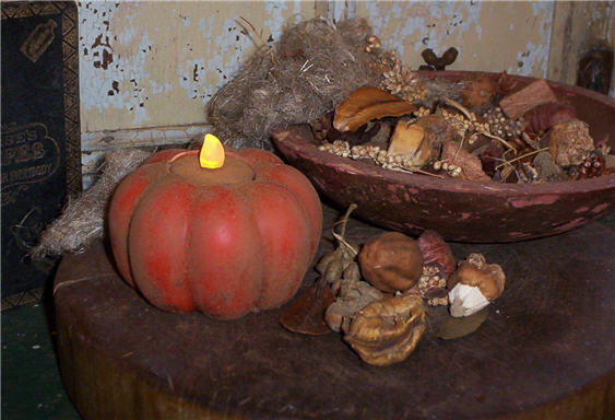 This 4" x 4" Grungy Pumpkin flicker light is scented in Farmhouse Pumpkin Spice. A home made blend of baked pumpkin and Cinnamon with hints of nutmeg. The pumpkin is rolled in a spices for an extra grungy look.