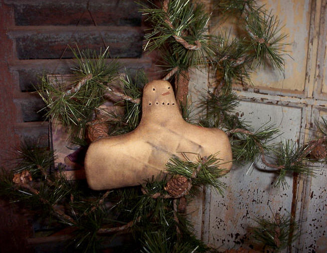 6" Melvin snowman aged grungy ornament with stick nose and hand stitched face.