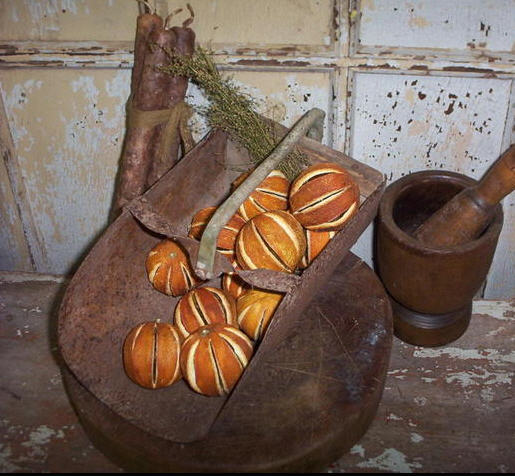 One dozen BEAUTIFUL fragrant dried slit oranges approximately 2.25" in diameter. These oranges come in a cello bag with a homespun tie.