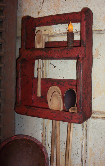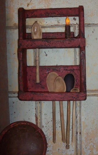 Darling chippy black over red spoon keepmeasuring 10.5" X 15". The top shelf has 3holes and the bottom has 7. As you can see weuse them for more than just spoons.