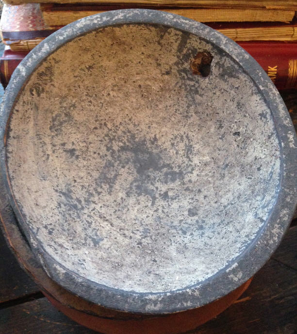 Hand hewn 9" maple bowl painted and aged dirty