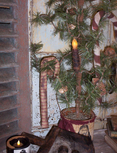 9" Aged striped ticking candy cane.