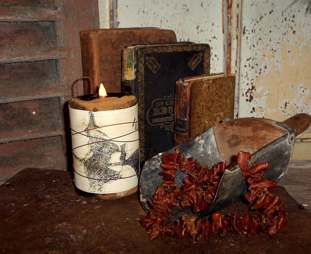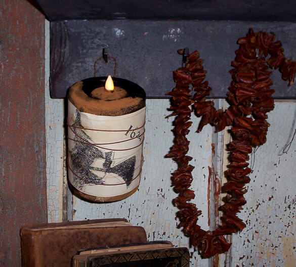3"X3" Pitch Witch flicker can hang on a peg orsit on a table. Available in Olde ColonialKitchen (shown), Pumpkin Spice or Cloveand dusted with our signature Spice blend.
