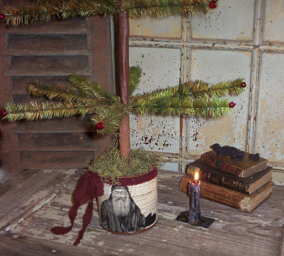 in aged buckets decorated with Monahan Papers Coal Santa