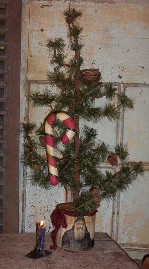 8.5" X 4" Red, White and Green striped beeswax candy cane.