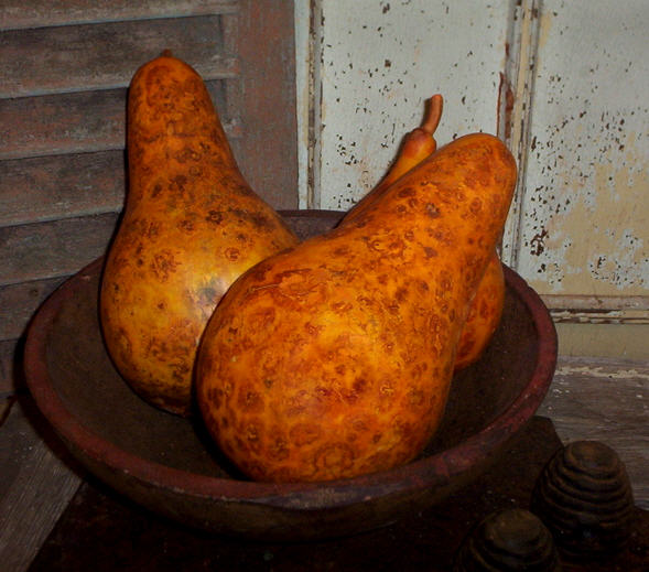 Fantastic papaya gourds in PUMPKIN. These are fairly largeand measure 5"-9" wide and 8"-14" Long. It doesn't take a lot of these to fill a big dough bowl.