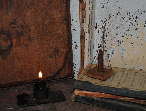 Small wooden wired candle ornament.