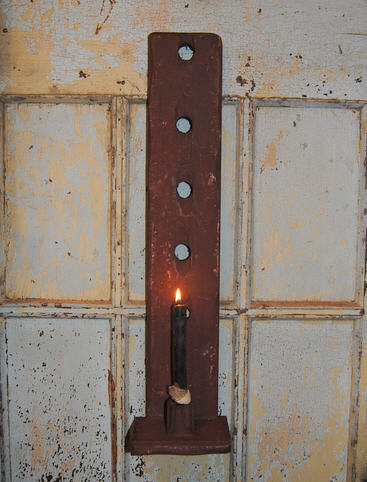 Wonderful chippy brown over red LONGcandle holder. This candle holder measuresalmost 23" in length. The candle ledge is 5"long and 3.5 " deep. The raised carved candleholder is 1.5" tall and it comes with a pitchtaper. Another favorite for me.