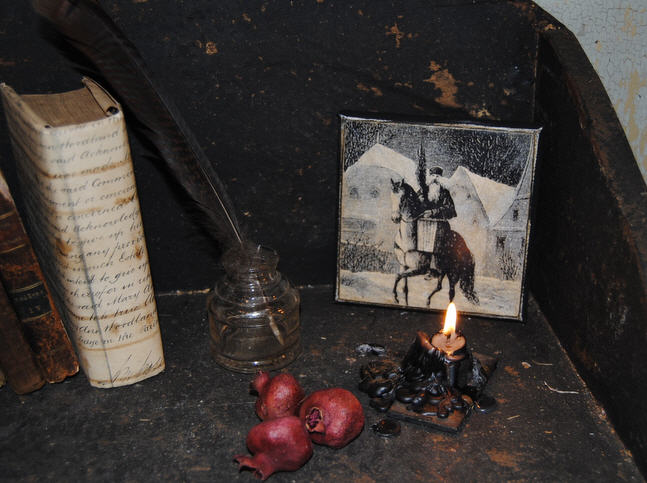Belsnickle on a Horse aged 5" x 5" canvas. This belsnickle featured in Monahan Paperscomes on a stretched canvas over a wooden frame.
