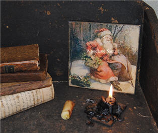 Woodland Santa aged 5" x 7" Canvas. This Santa is on themove through the woods to deliver his presents.