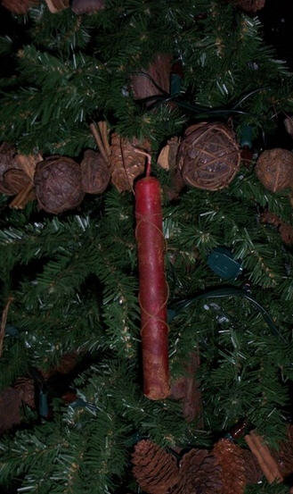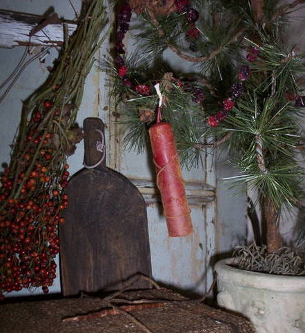 Highly scented hanging wired Cranberry Plum candle ornament. Available in the 1.5" nub, 3" stub and the 5" taper. (nub not shown)